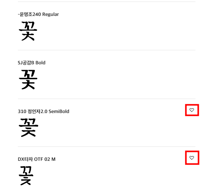 2.2 여러 글씨 중 찾고 싶은 폰트를 선택(클릭)해주세요.