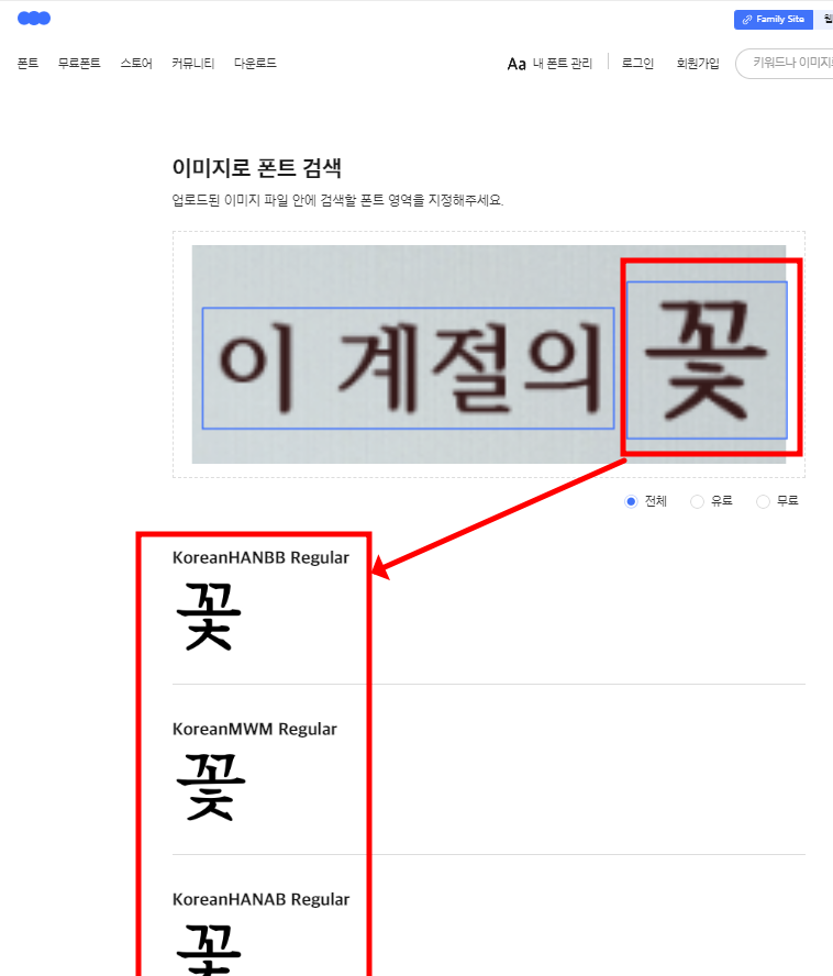 1.3 여러 글씨 중 찾고 싶은 폰트를 선택(클릭)해주세요.