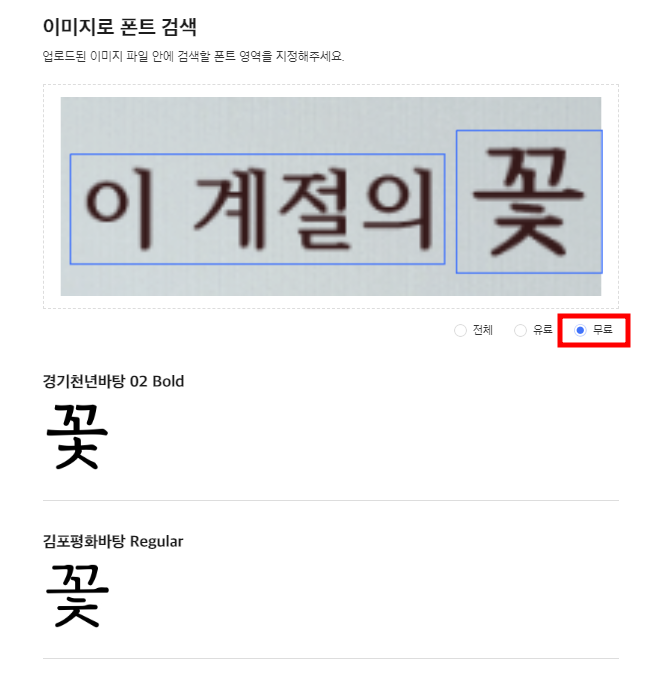 What the Font에서는 무료와 유료 폰트를 나눠주는 기능은 제공되지 않고 있네요.
