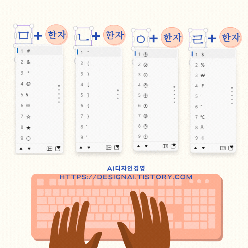 각각의 ㅁ,ㄴ,ㅇ,ㄹ 키와 한자키