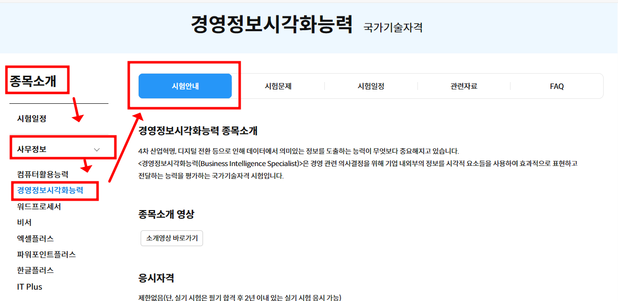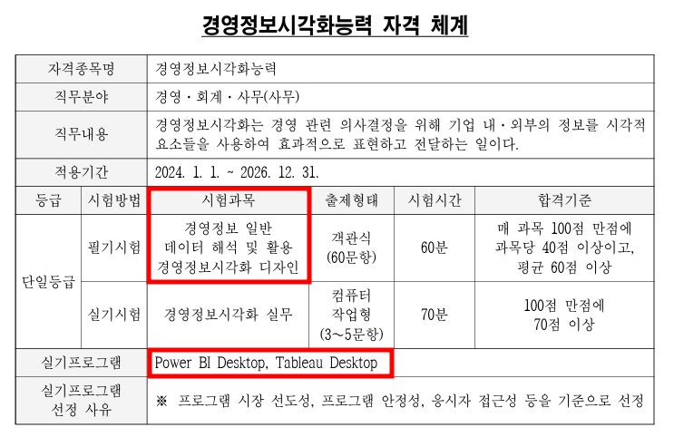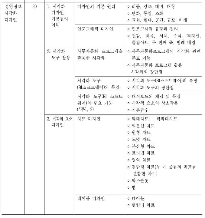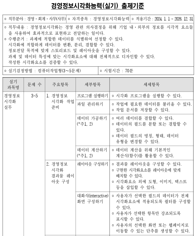 출제기준 다운로드(아래 링크) 경영정보 시각화능력시험은
