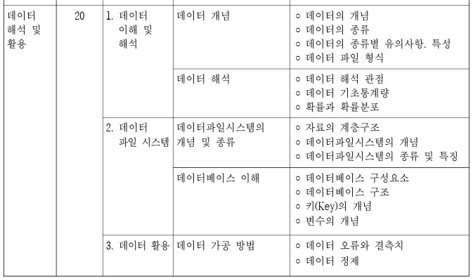 필기 출제 기준을 보면
