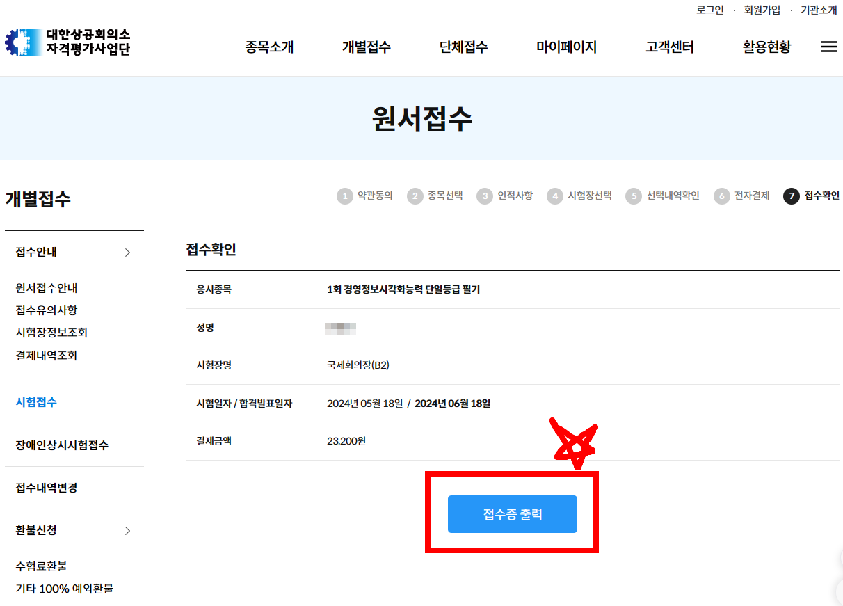 접수증 출력 중요합니다!!