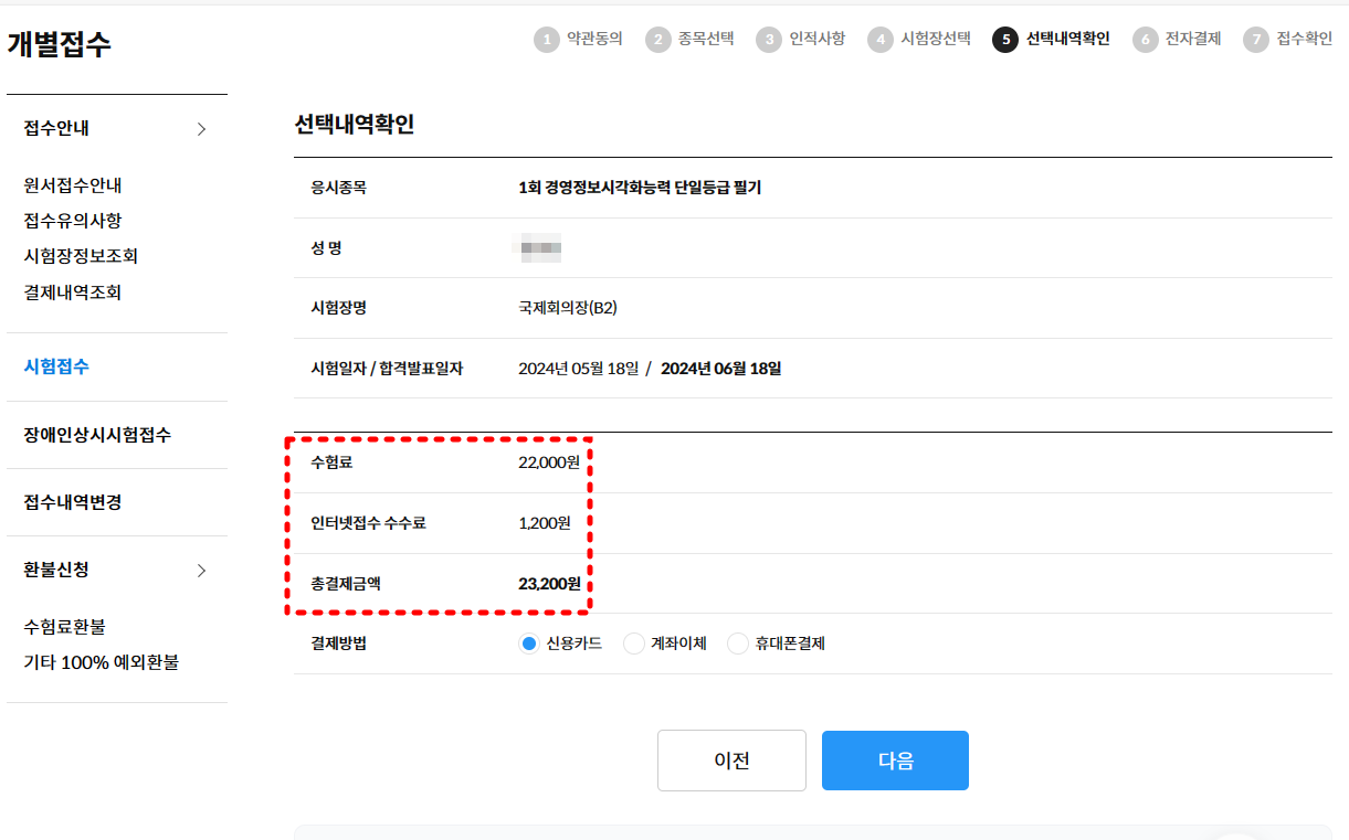 아예 응시료에 인터넷접수료+1200이라고