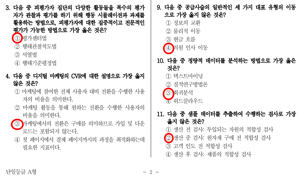 이의신청기간 이후 정답이 일부 바뀌게 될 수도 있다는 점 감안해주세요.