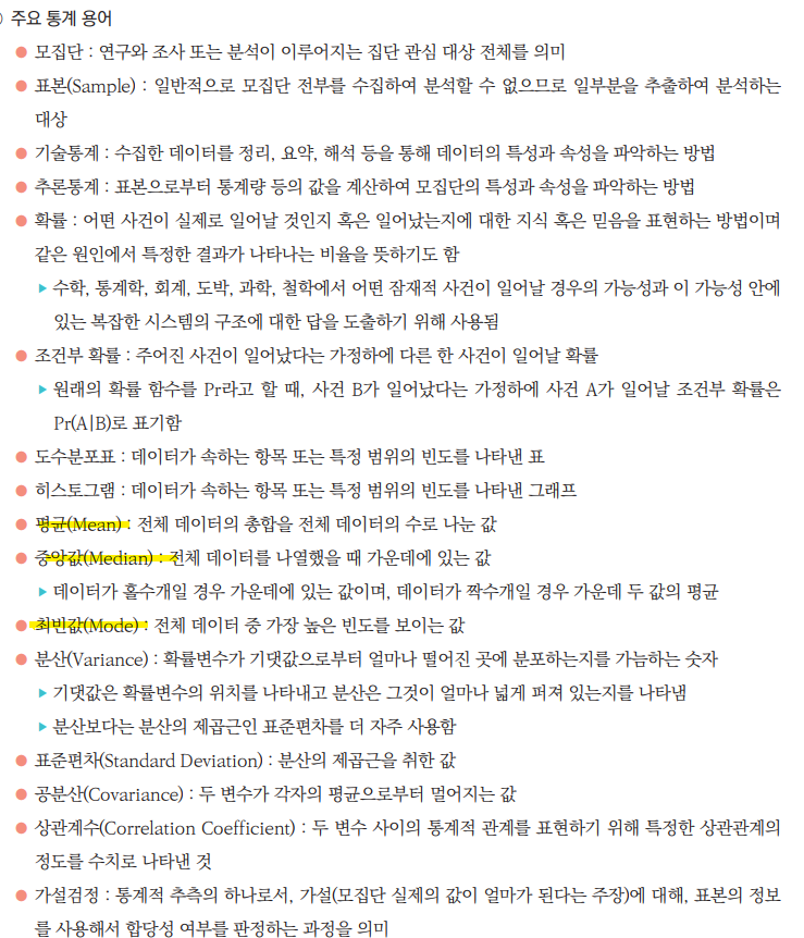 경영정보시각화눙력시험 가이드북 25. 통계용어