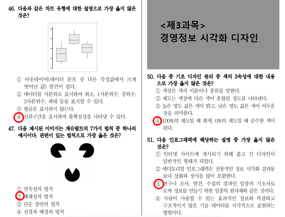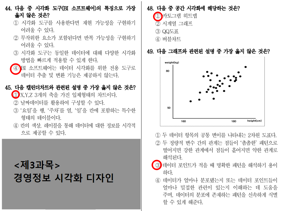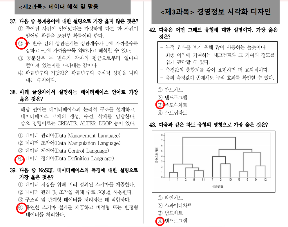 경영정보시각화눙력시험 가이드북 42. 43. 모의문제에 나왔던 내용