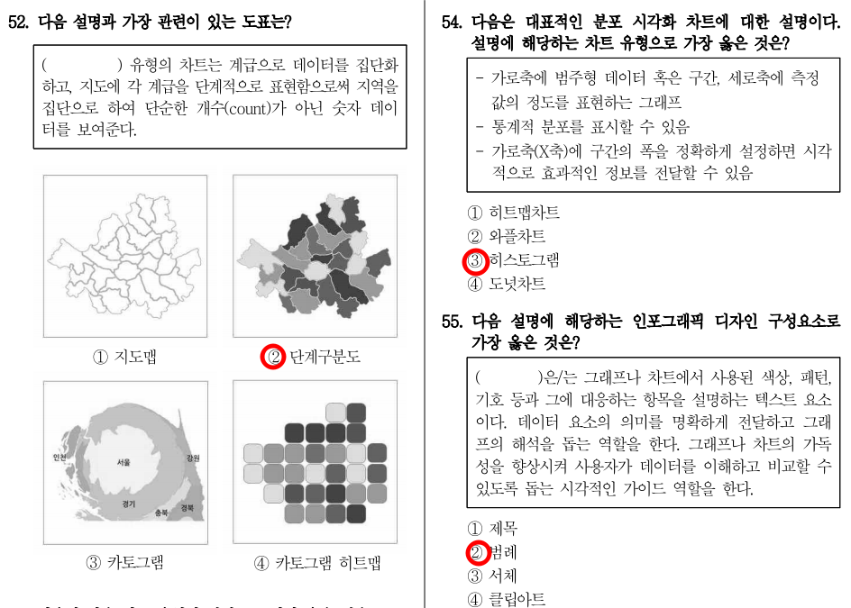 경영정보시각화능력시험기출풀이 52. 55. 모의문제에 나왔던 내용