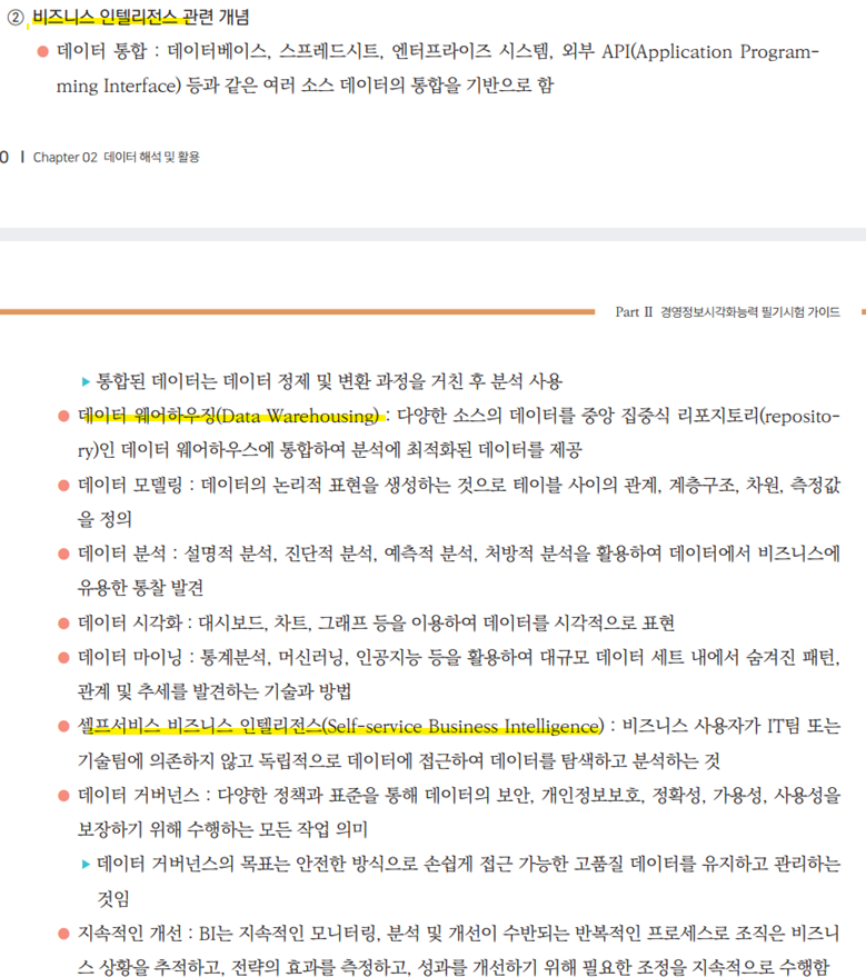 경영정보시각화눙력시험 가이드북 14. 모의문제에 나왔던 내용