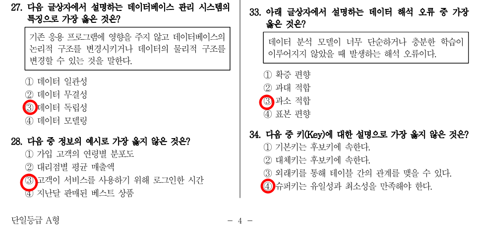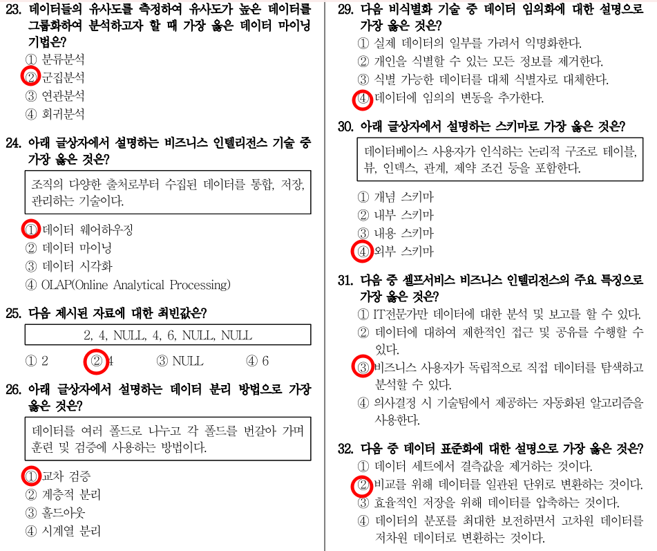 : 모의 문제에서 비식별화가 하나 나오긴했지만 이정도로 자세하게 나오진 않았었고, 수험가이드에도 없던건데 항목으로 나왔더라구요. 빅데이터 저장 관리 공부하신 분들이 맞추셨을 문제예요.