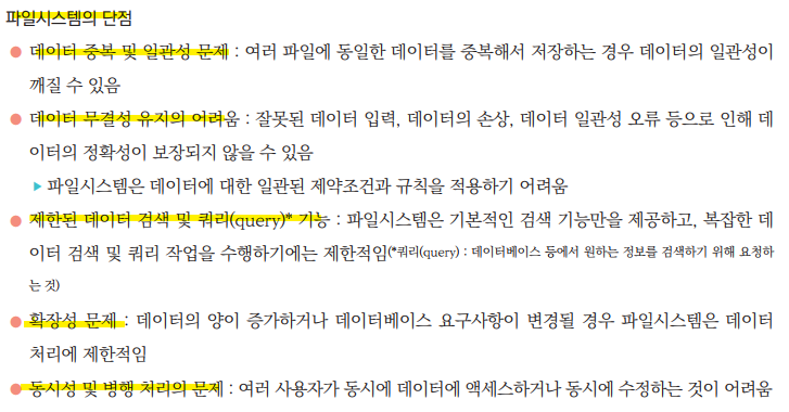 : 파일시스템의 단점으로 인해 DBMS(데이터베이스관리시스템)이 나오게 되었죠.
