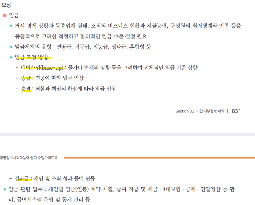 경영정보시각화눙력시험 가이드북 16. 임금 조정 방법 용어 정의