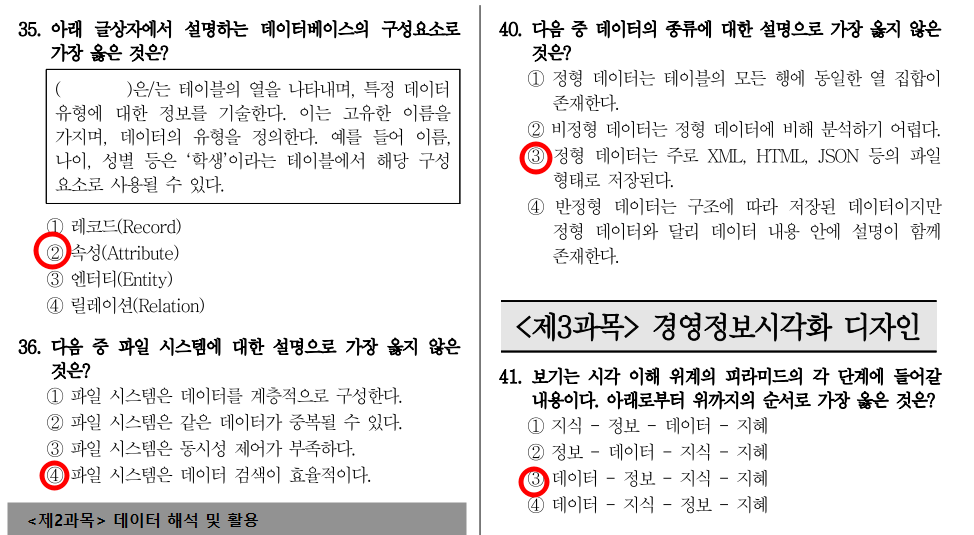 경영정보시각화능력시험기출풀이 35. 데이터베이스 구성요소