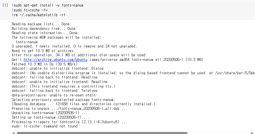 !sudo apt-get install -y fonts-nanum #코랩에 한글폰트 설치