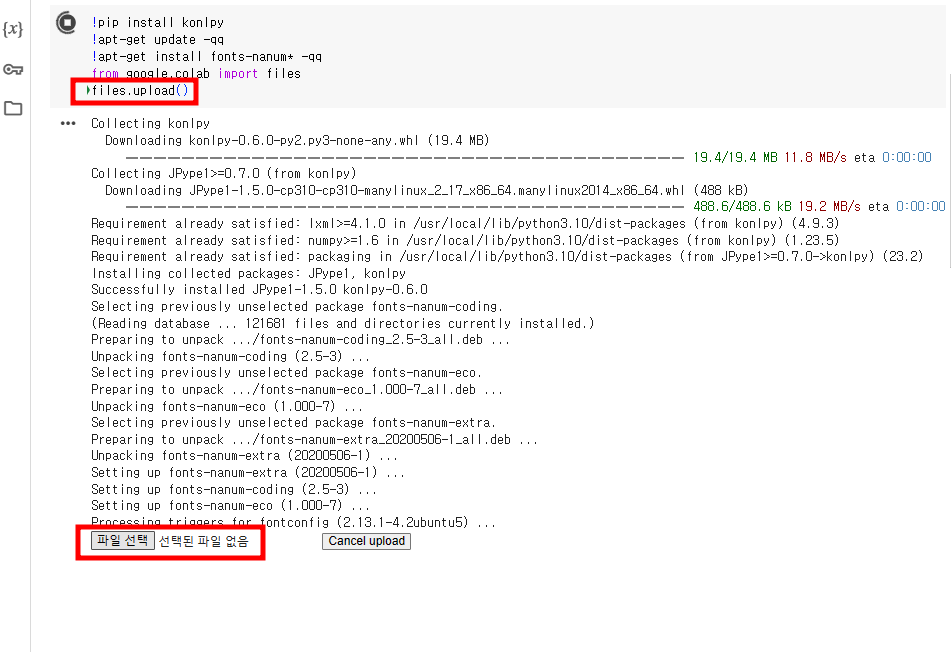 files.upload() #실행시키면 이 코드 바로 아래에 파일 업로드 클릭하는게 뜸