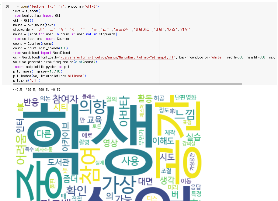 stopwords = ['이', '그', '저', '것', '수', '등'] #워드클라우드에서 제외하고 싶은 단어나 조사 등등 작성 #불용어제거