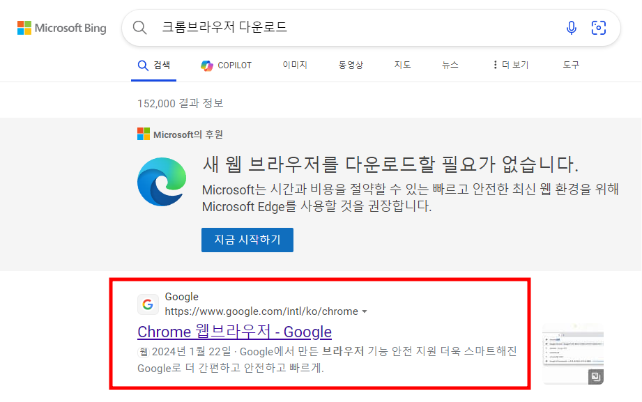 위 링크를 클릭하면 검색없이 바로 "크롬브라우저 다운로드" 가 가능하다.
