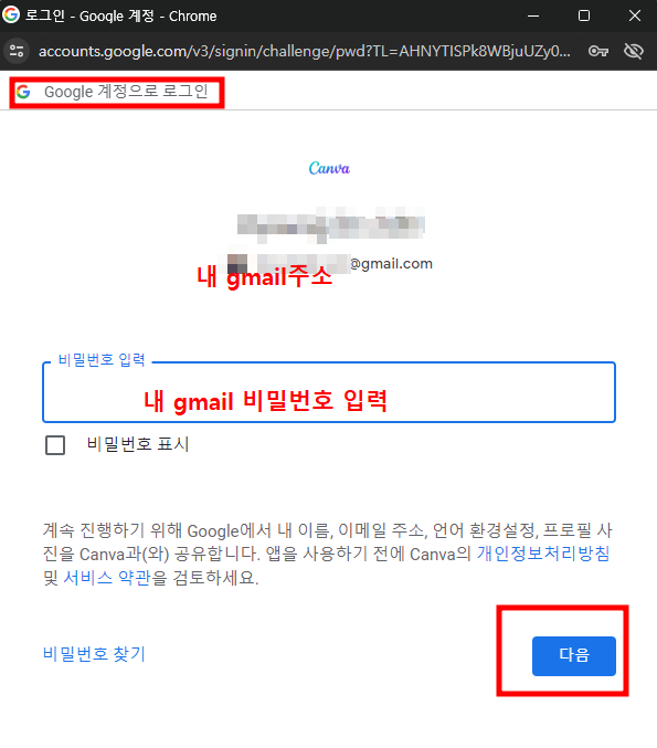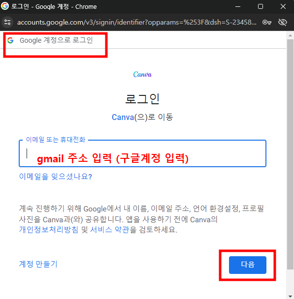 8)7에서 만든 구글계정 입력 (기존에 gmail 사용중이시던분은 기존 gmail 주소 입력)