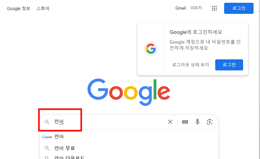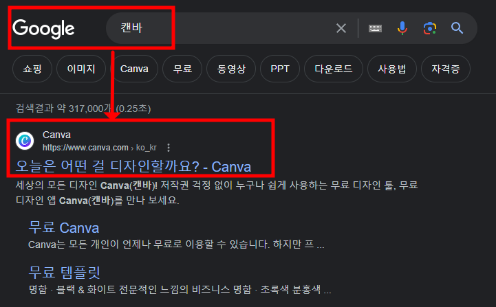 혹은 영어로 "canva" 라고 (따옴표 없이) 쓰고 검색 버튼 눌러주세요.