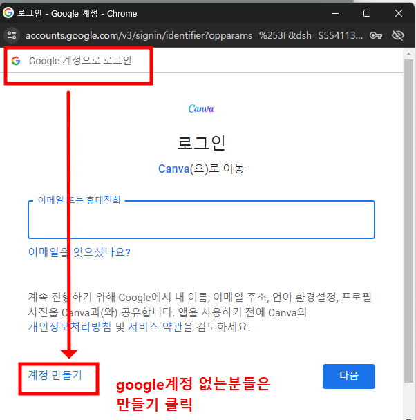 1)네이버나 구글 같은 검색엔진의 검색창에 한글로 "캔바"