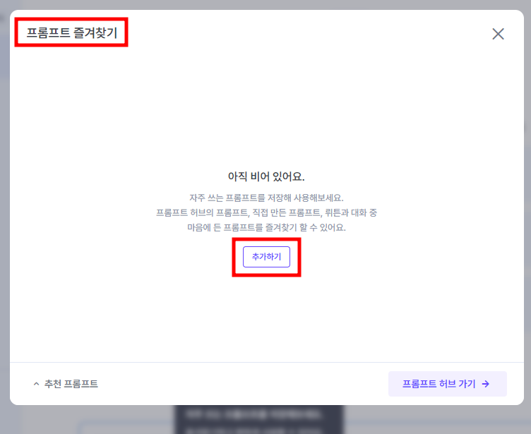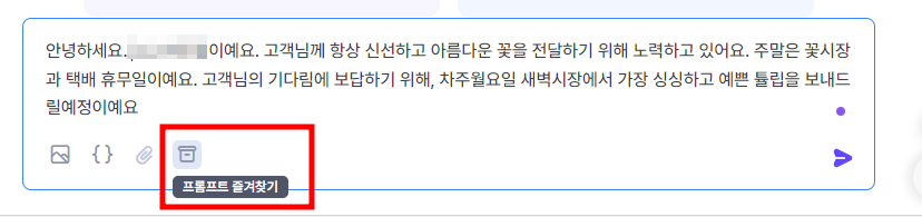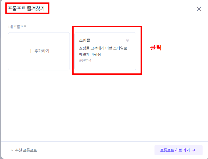 10)작성 완료 후 하단의 "프롬프트 즐겨찾기" 클릭