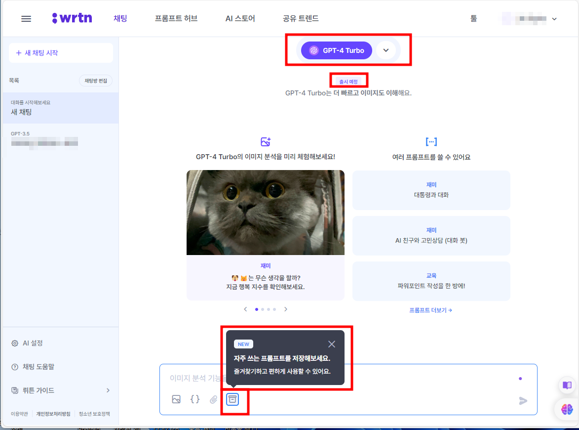※뤼튼Ai중 현재 가장 똑똑한 GPT-4 Turbo를 선택하고 하단의 프롬프트를 선택하려고보니 아직 미출시 되었네요. 아마 곧 출시될 것 같지만 이 글을 작성중인 2024.02.03일 현재는 다른 버전을 선택해야할 것 같아요!