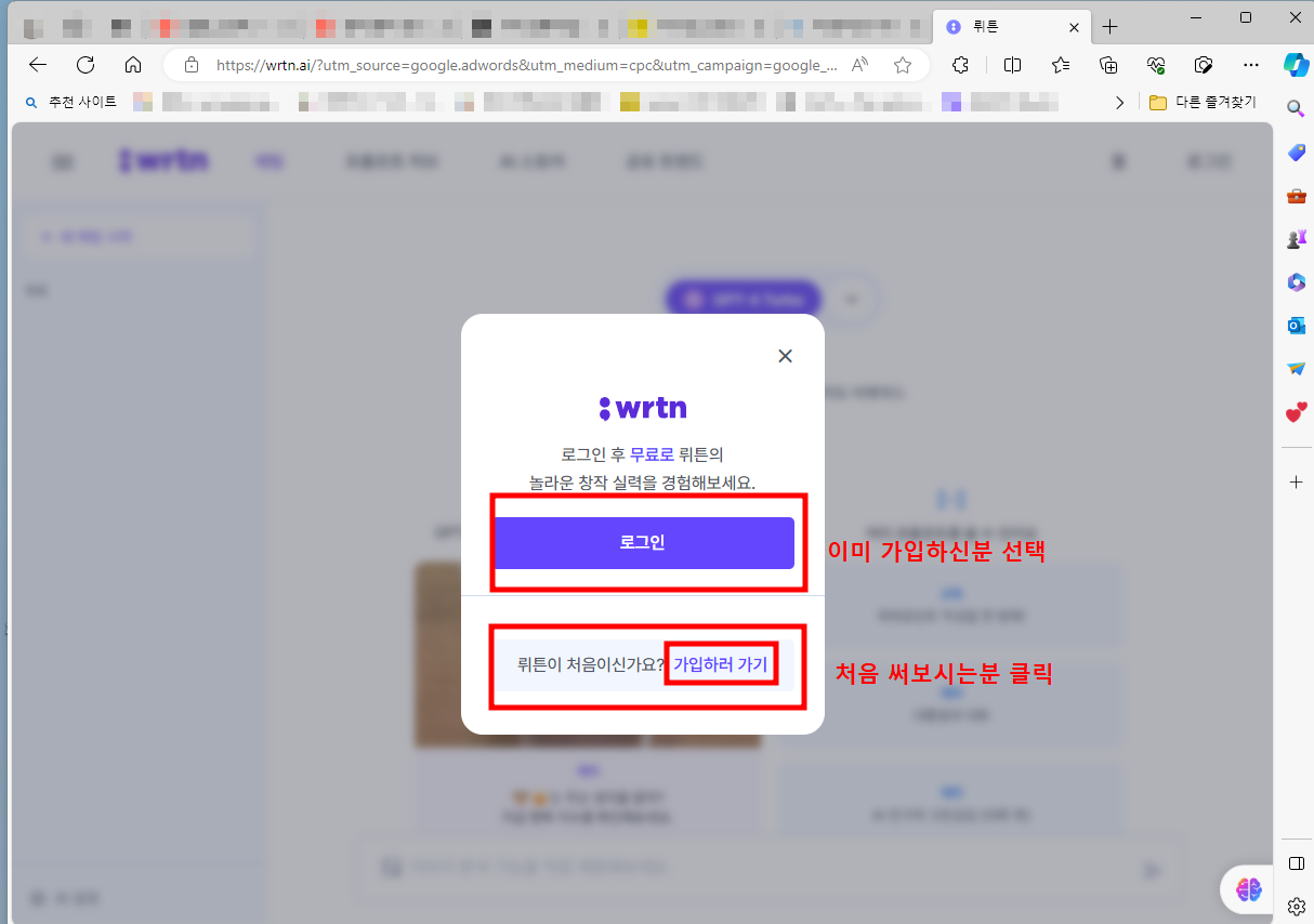 우측 상단 로그인 클릭! 2) 이미 가입하신적이 있는 분: "로그인 선택"