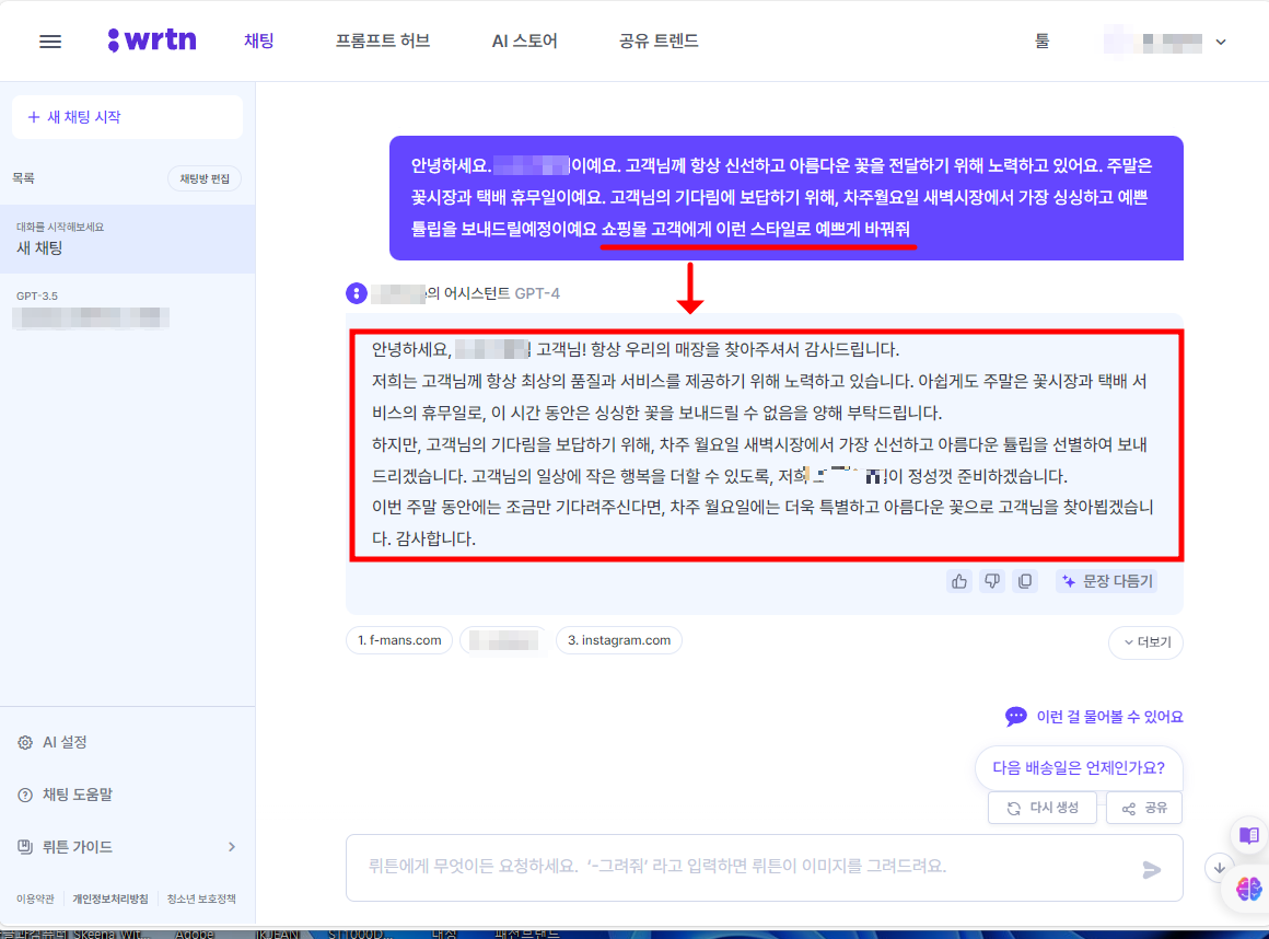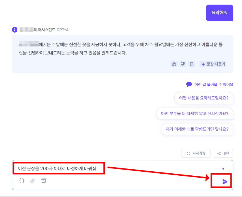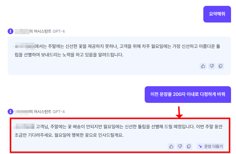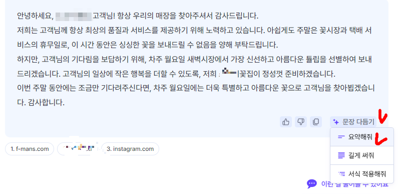 그런데 고객 메세지로는 문장이 너무 길어서 , 문장 길이도 Ai로 다듬어 볼게요.