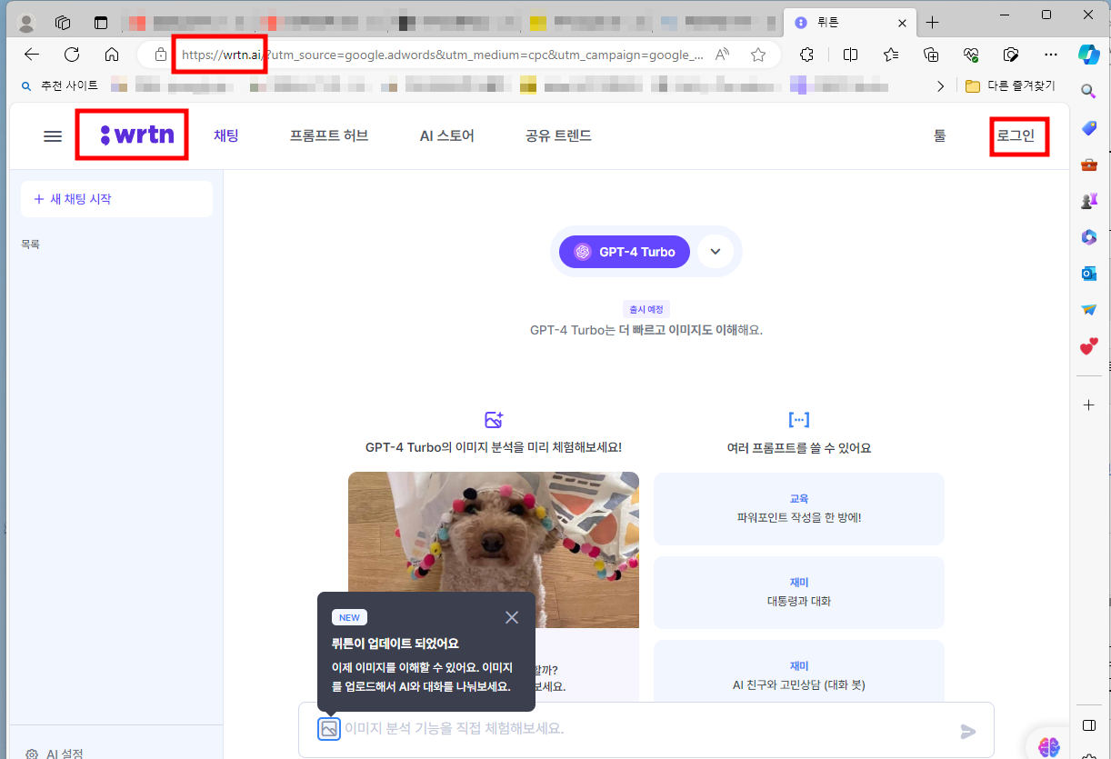 1) 뤼튼Ai https://wrtn.ai/ 에 접속해주세요.