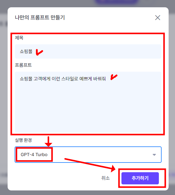 "나만의 프롬프트 만들기" 창이 생겨요.